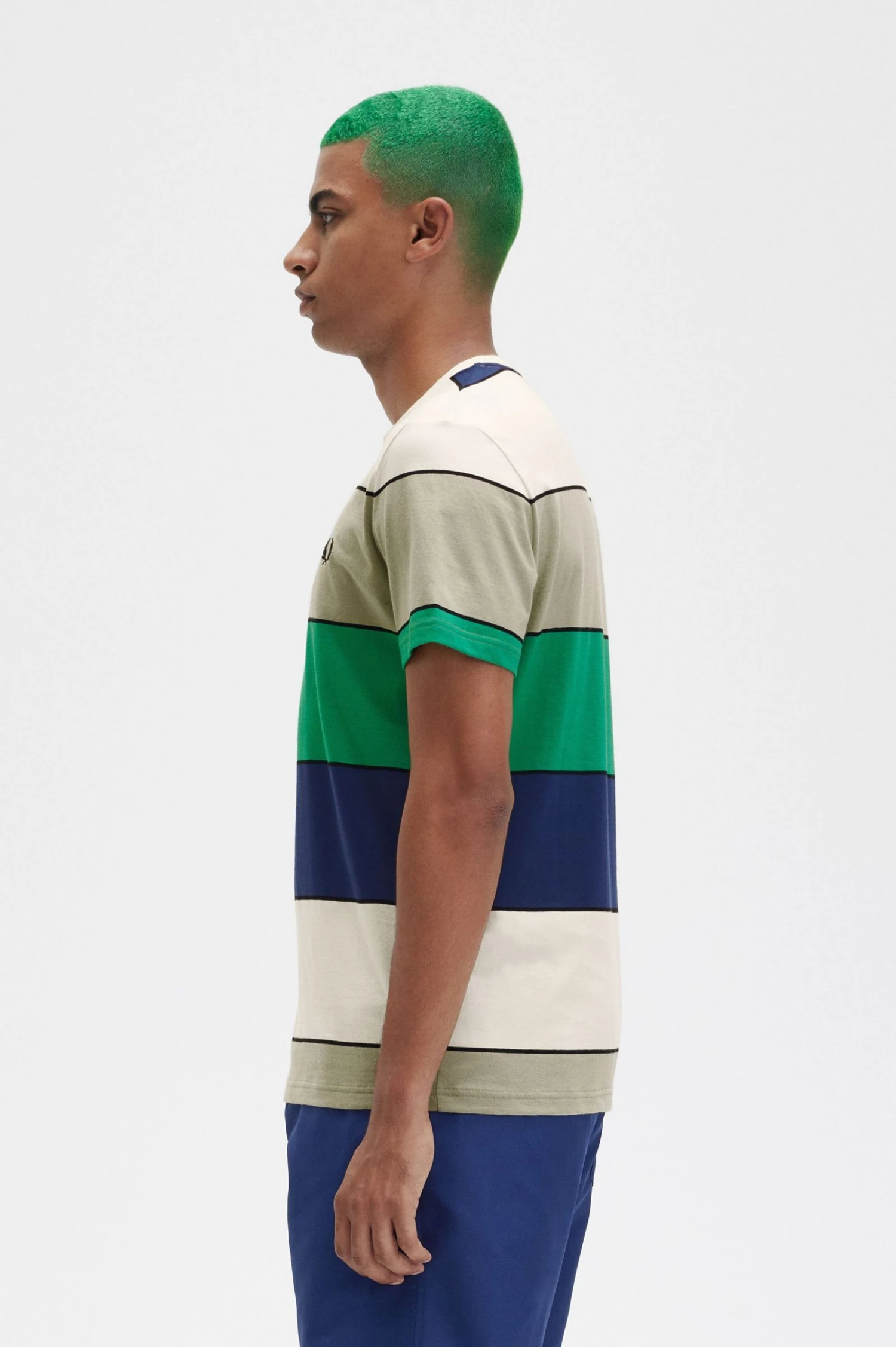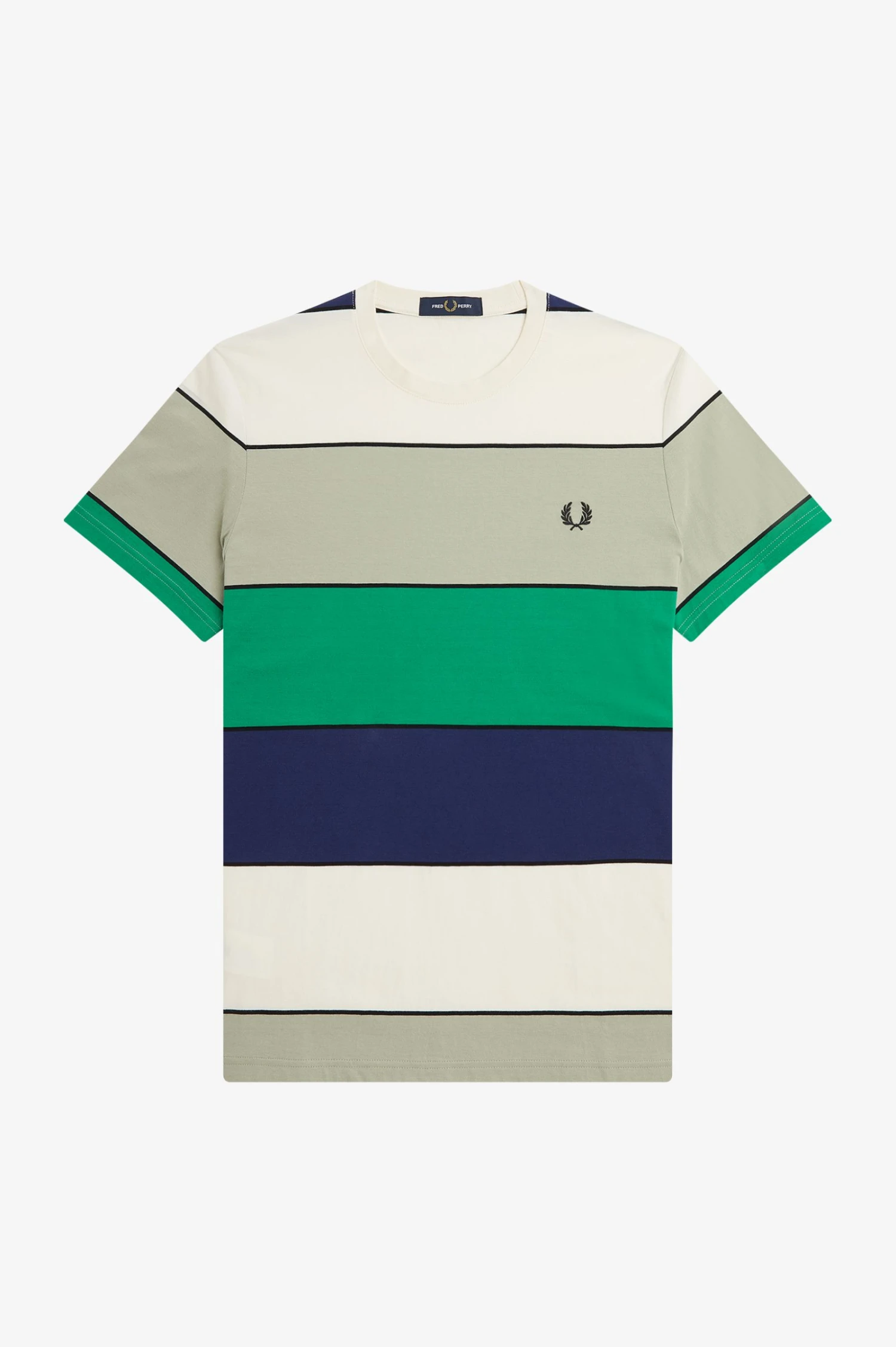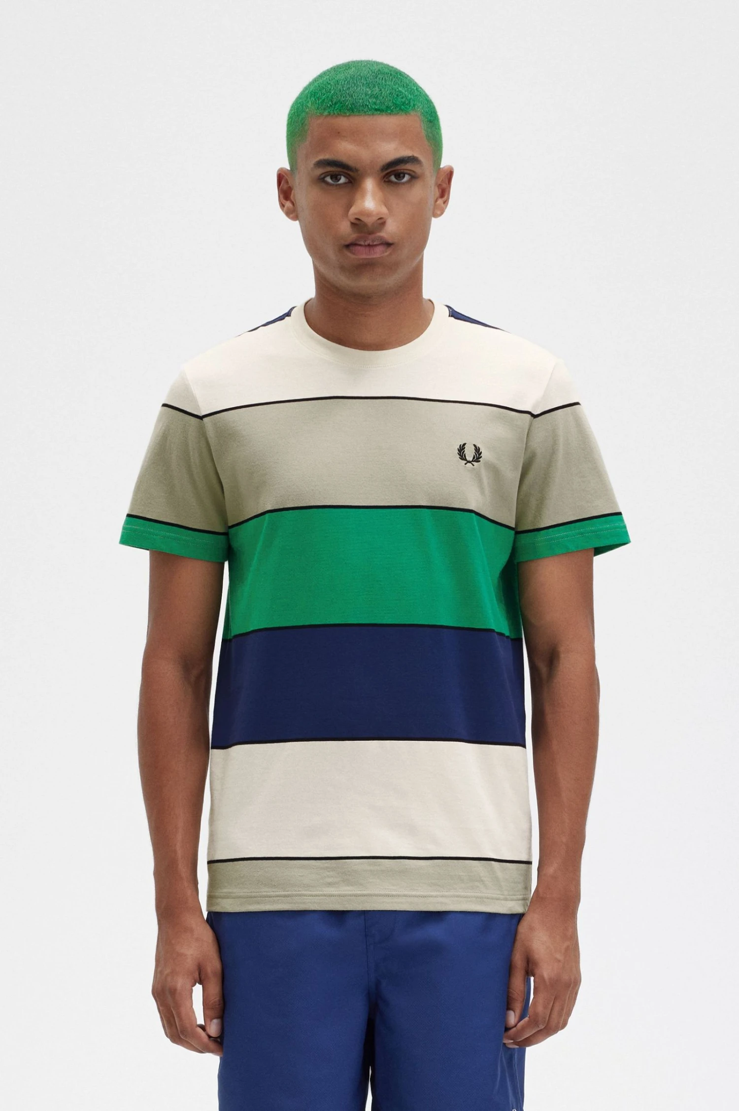 A key piece in our sharp collection, our yarn dyed striped t-shirt is bold, fresh, and always synonymous with Fred Perry. Adopting this quarter’s key Ecru, French Navy, and Seagrass colourways for standing out in the crowd.
