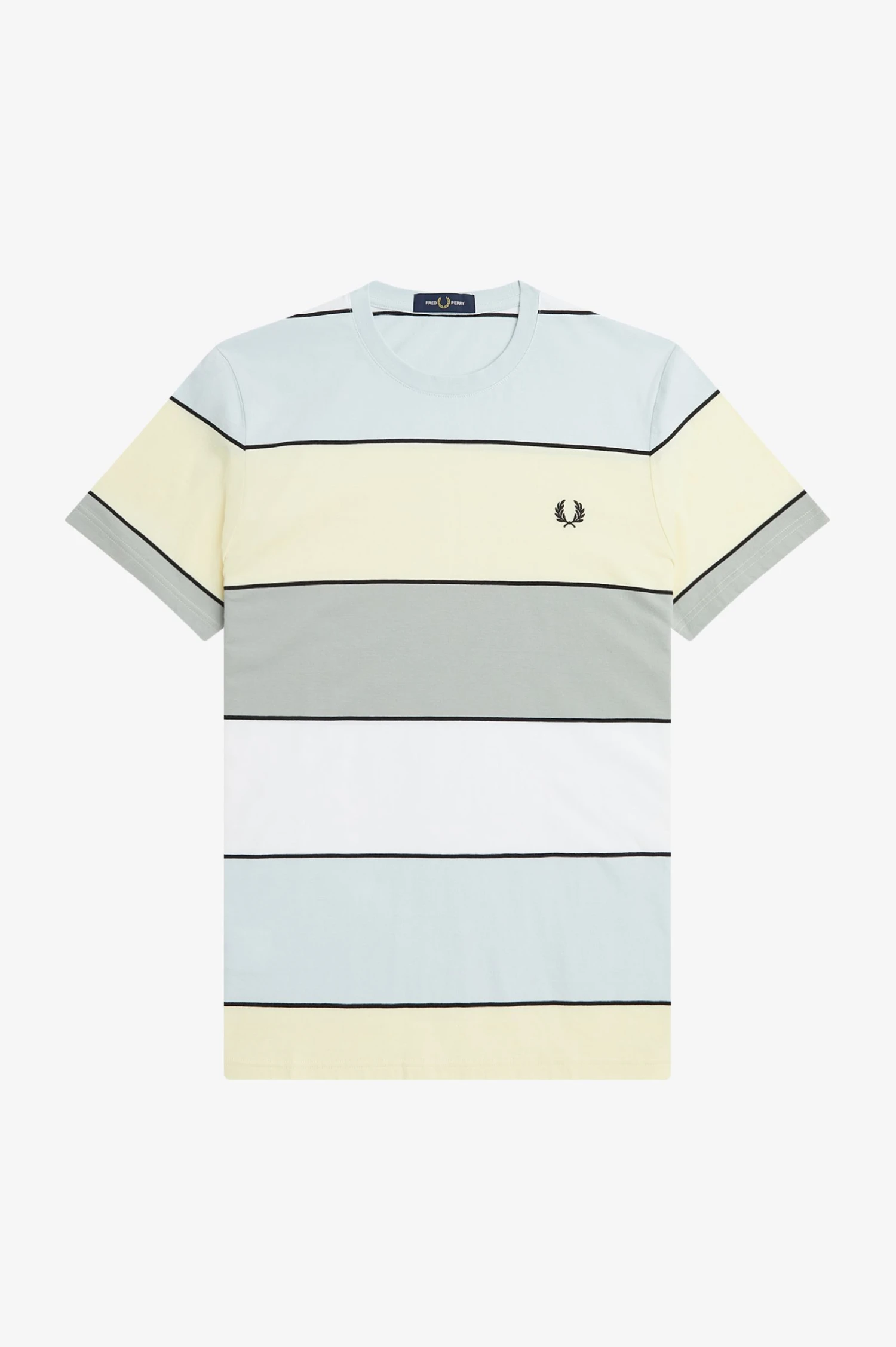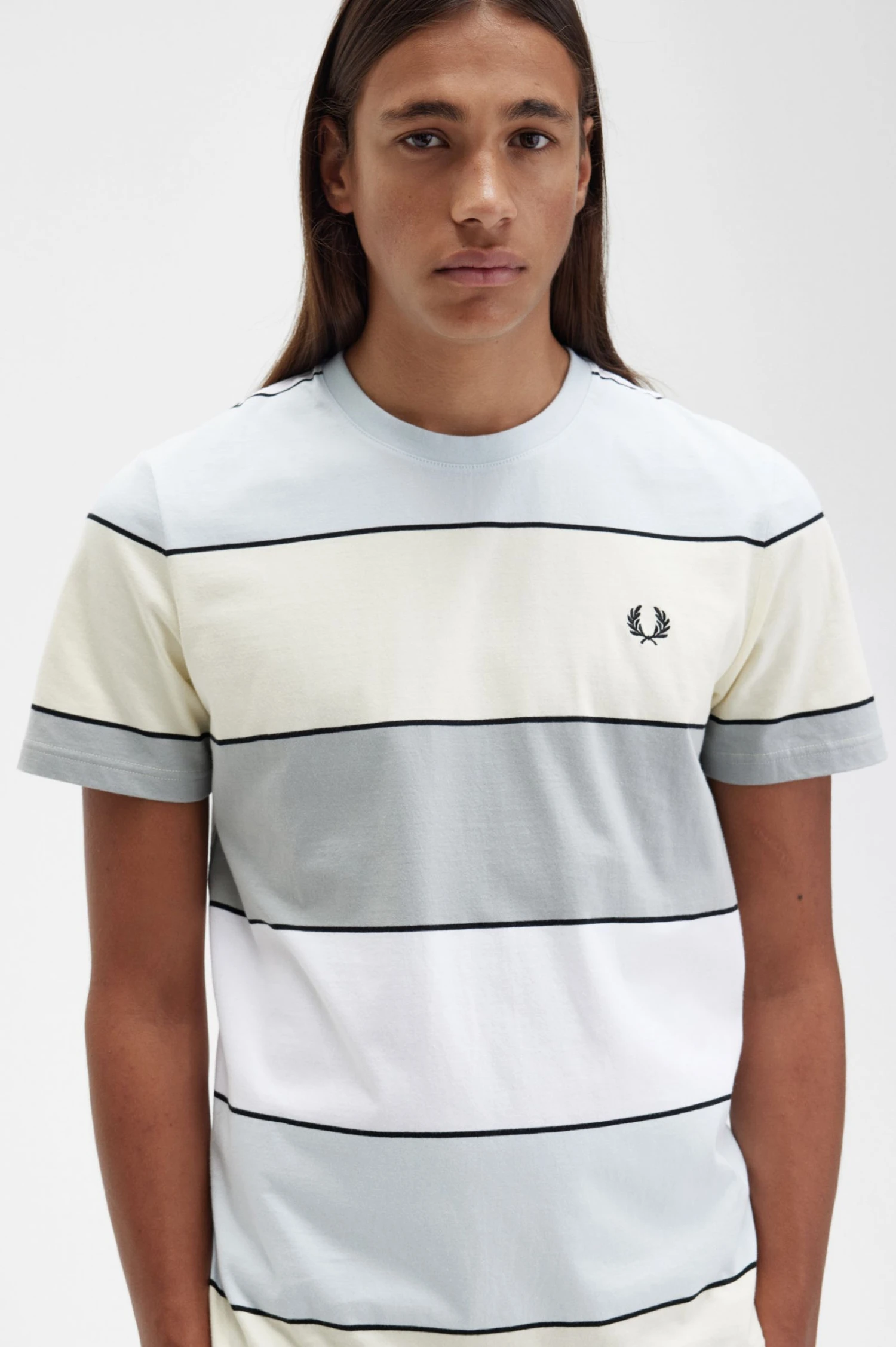 A key piece in our sharp collection, our yarn dyed striped t-shirt is bold, fresh, and always synonymous with Fred Perry. Adopting this quarter’s key Ecru, French Navy, and Seagrass colourways for standing out in the crowd.Â