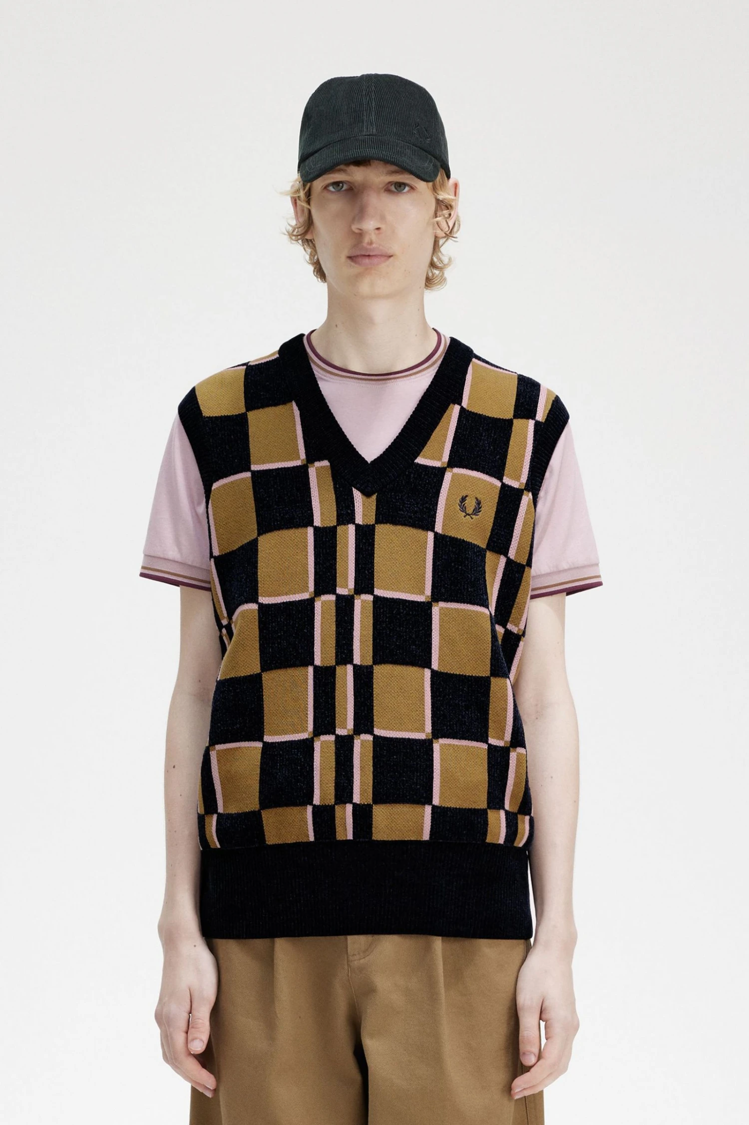 Our glitch pattern designs reference the screens and soundwaves of the ‘90s rave and techno scenes, when bold colours and abstract shapes took cues from the multi-coloured sportswear appearing across the European tennis circuit. Our glitch chequerboard tank features the signature Laurel Wreath embroidery to the chest. Unmistakably Fred Perry.