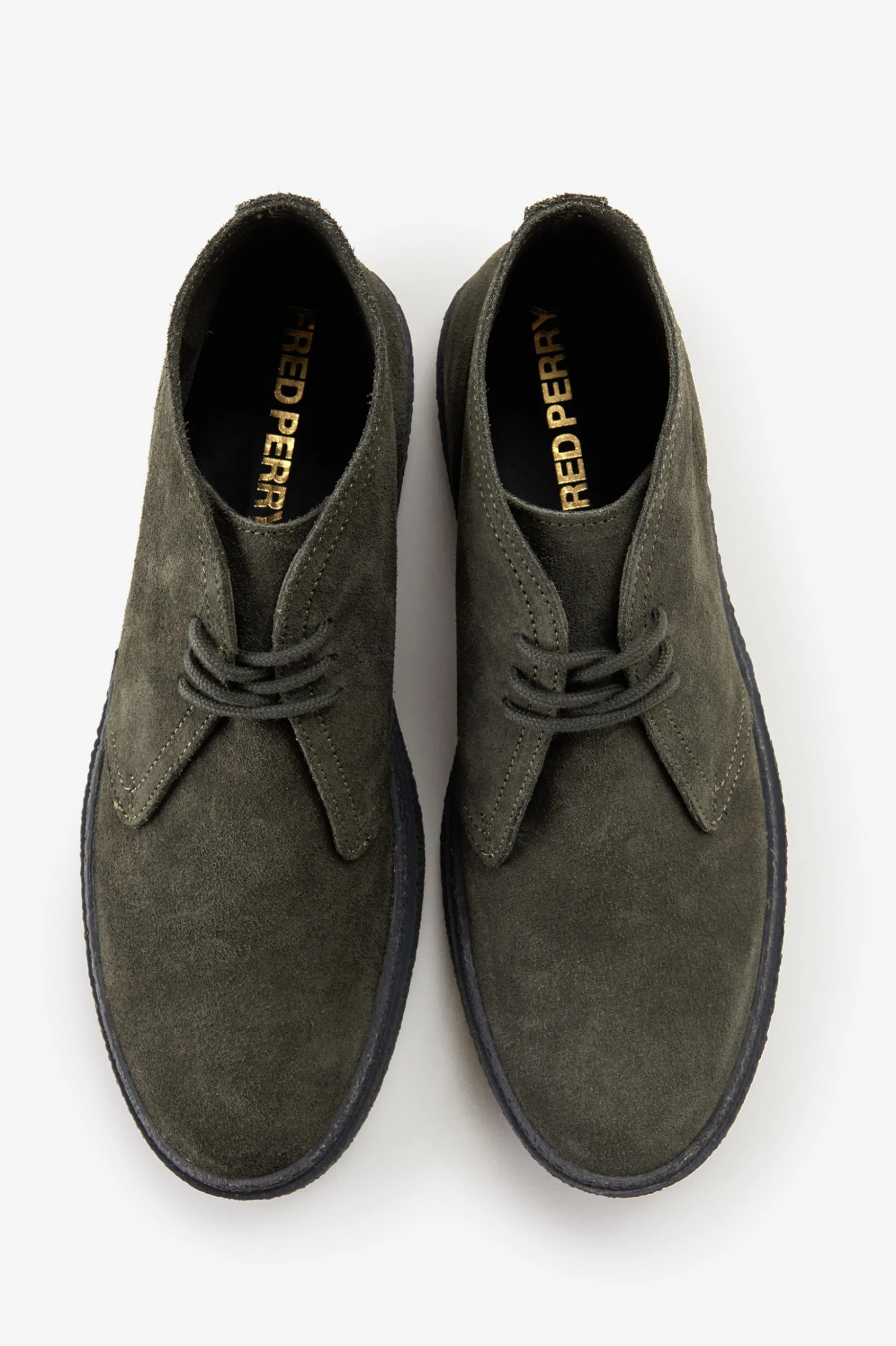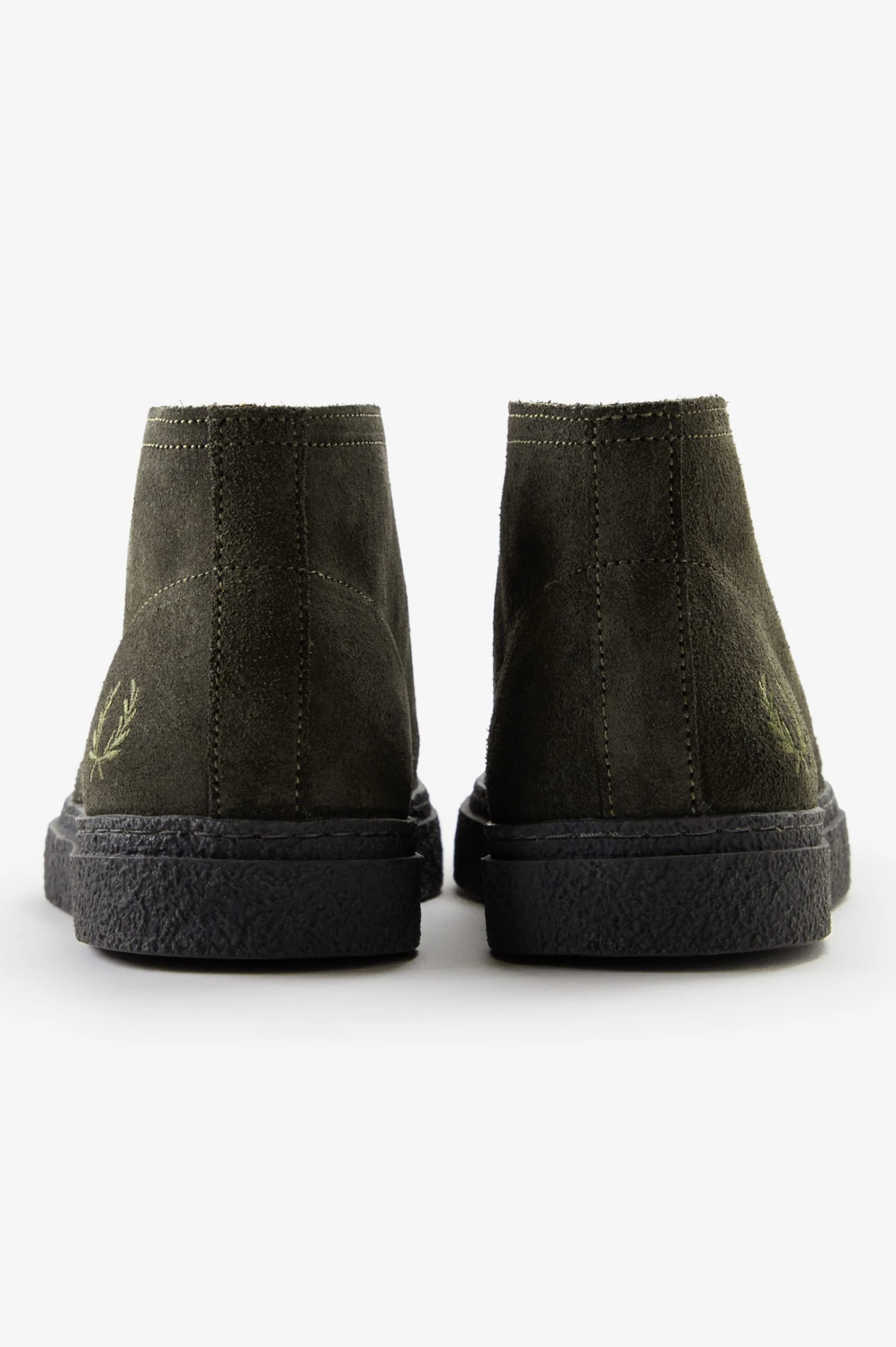 Originally worn in the military, the desert boot was adopted by British subcultures for its smart silhouette and lightweight, hardwearing design. Revived with its signature suede upper, the Hawley is a subtle take on the classic boot, with a chunky crepe-effect sole and Laurel Wreath embroidery adding texture and interest.