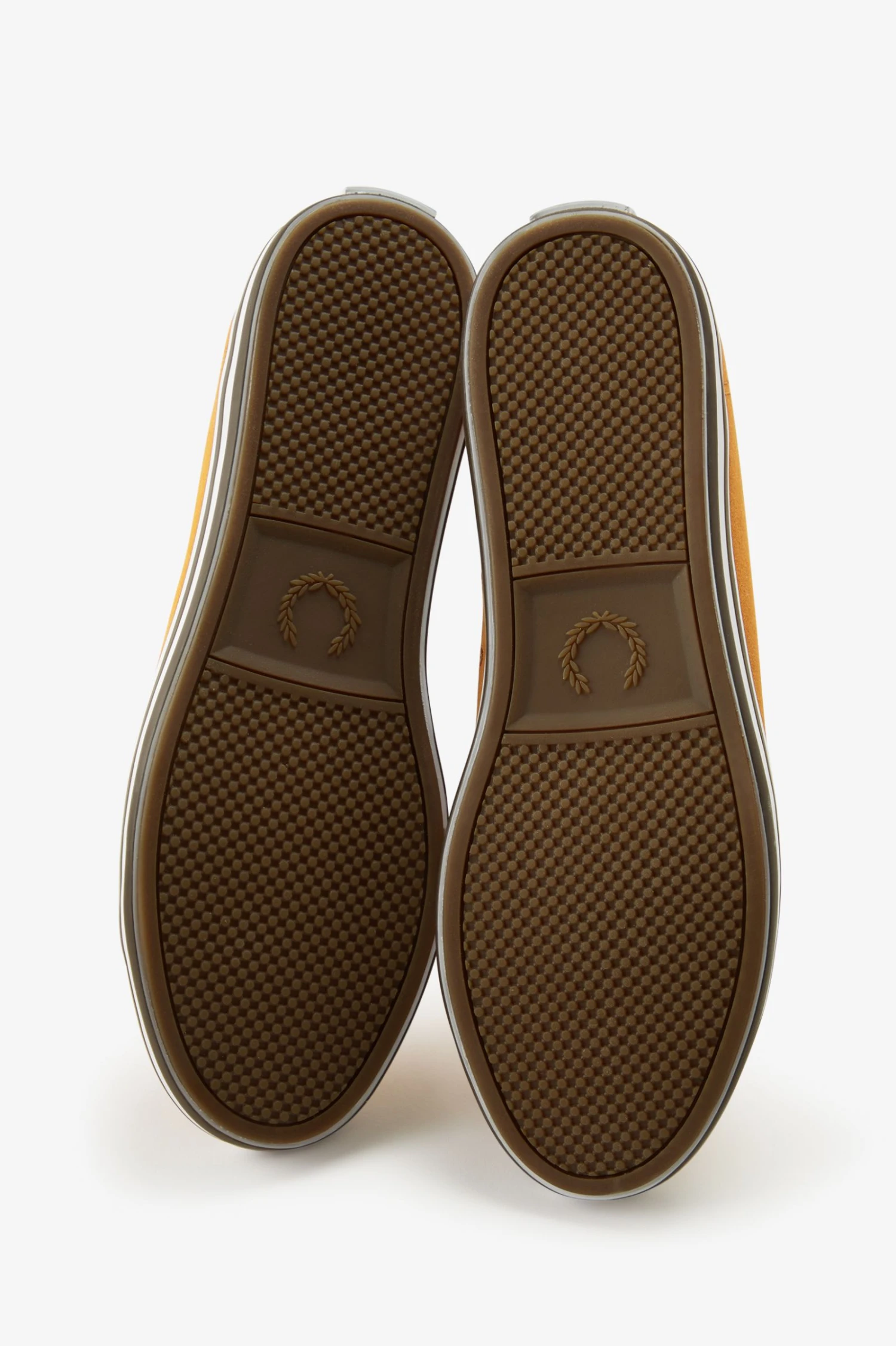 With our feet firmly rooted in tennis, our plimsolls are a bridge between life on and off the court, designed with relaxed off-duty styling and a slim, vulcanised-rubber sole. Made with the DNA of the Fred Perry Shirt, the Kingston borrows its key design details, with twin tipping and Laurel Wreath embroidery in familiar colourways.