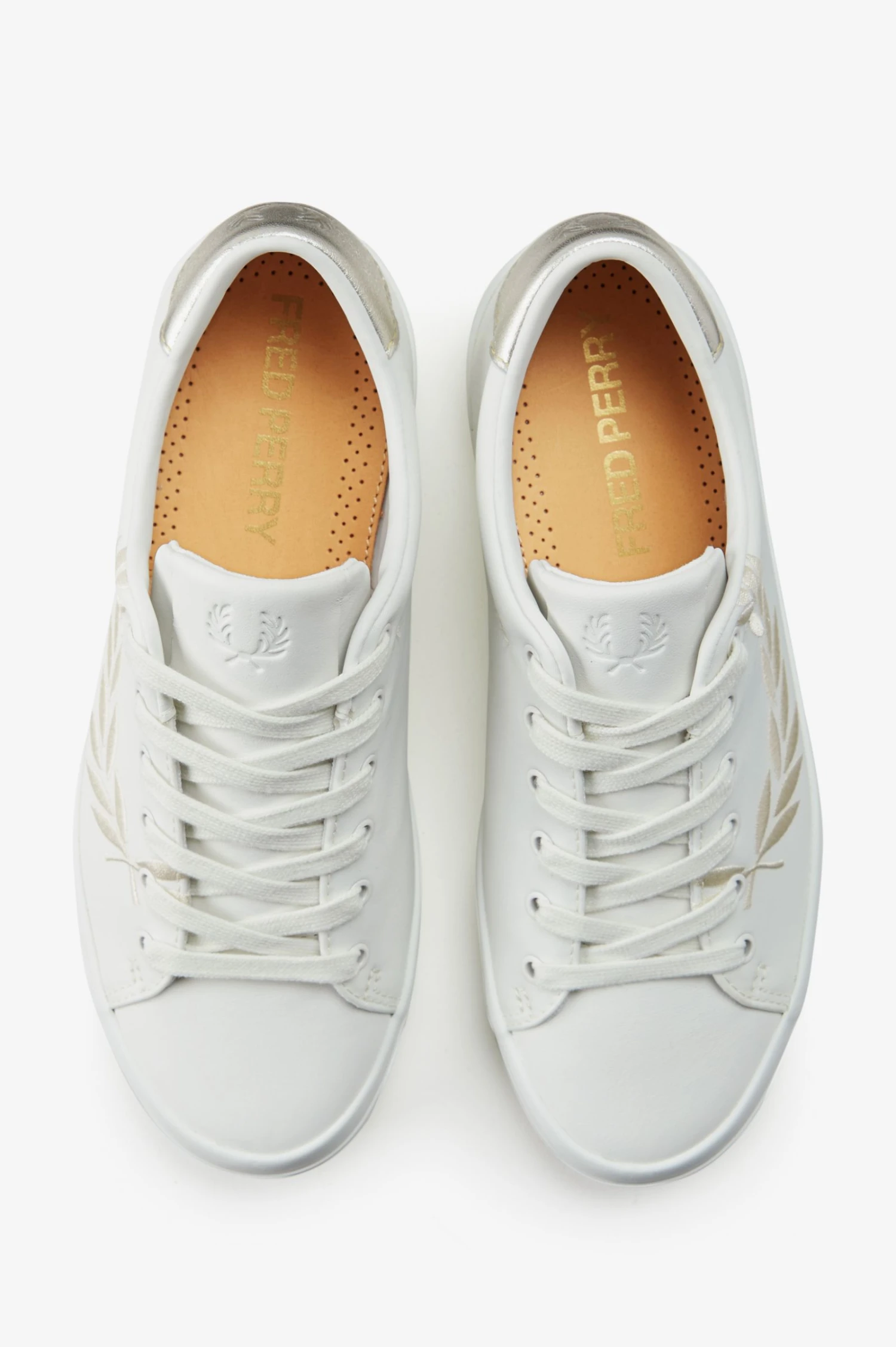 Our tennis shoes are all inspired by whatFred wore on the court. You need a good pair of shoes to become a triple Wimbledon champion, so we’ve taken the basics and designed something new. Adapted with contrast two-tone trims in colours inspired by the British subcultural uniform, the Lottie is designed to fit in with your sharper pieces. Constructed with original tennis details, with a vulcanised rubber sole, ankle support and a perforated in-sock inspired by tennis racquets.
