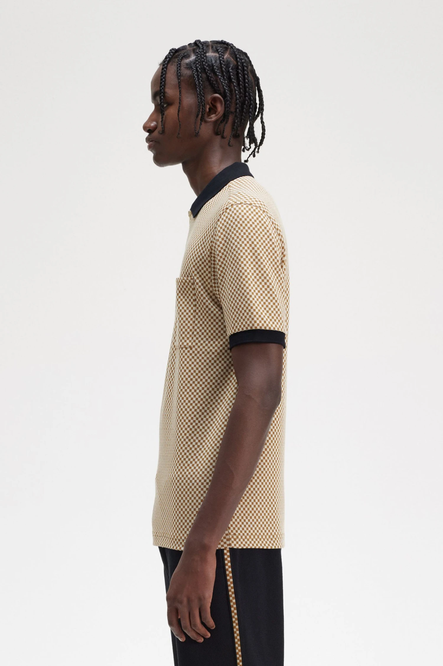 Where sport and subculture meet, that’s where you’ll find Fred Perry. Our micro chequerboard polo shirt takes inspiration from the digital, glitchy interpretations of the grid aesthetic, a pattern long been associated with the brand.