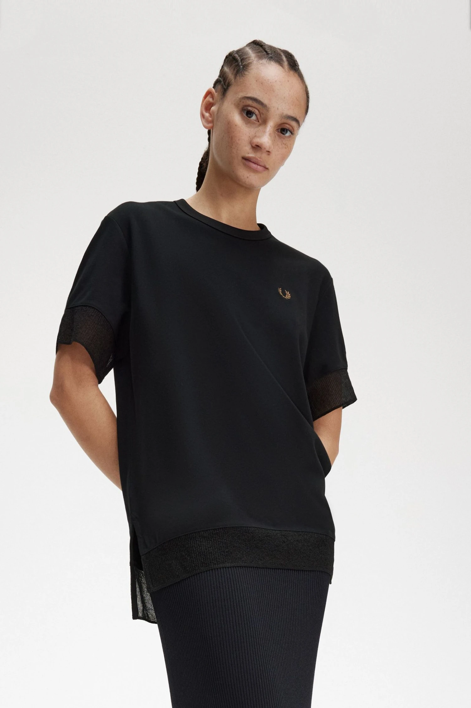 There’s a lot you can do with the humble t-shirt. Never forgetting where it came from, but keeping things creative, our sheer trim cotton piqué t-shirt is easy to dress up or down.
